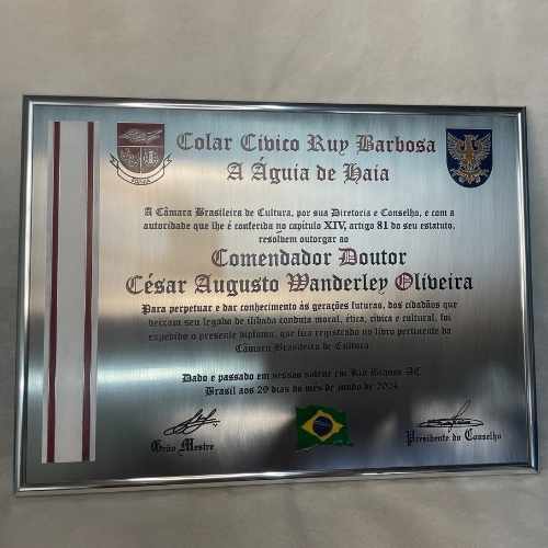 Enviamos sua placa em um estojo de veludo, garantindo total proteção e qualidade.