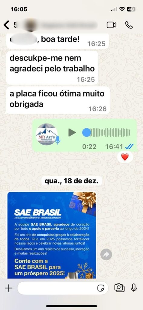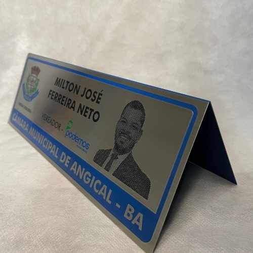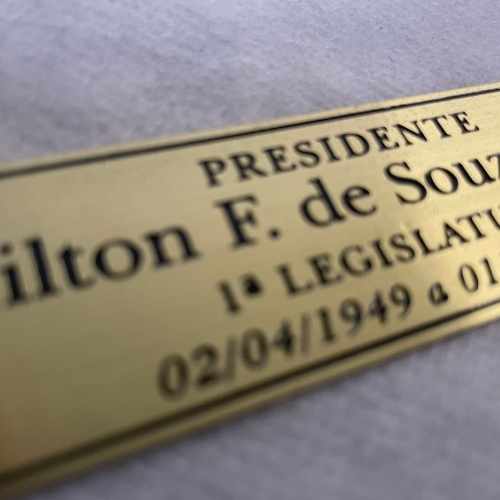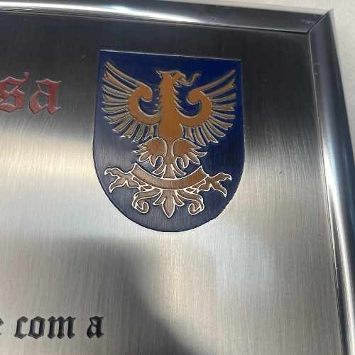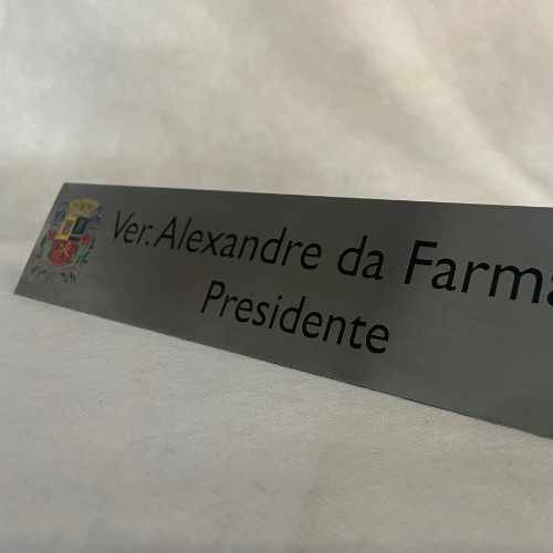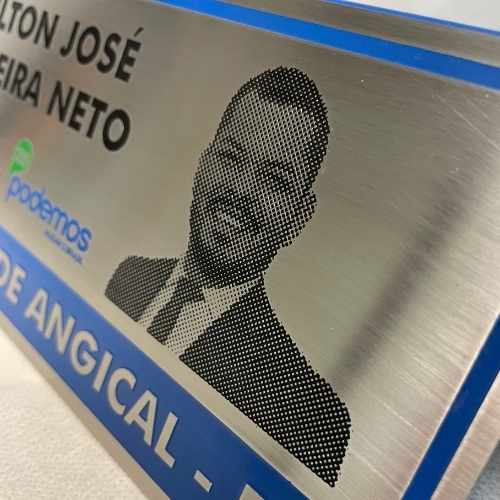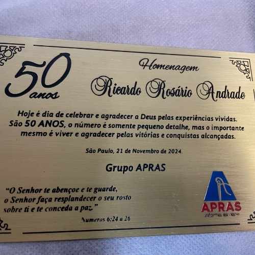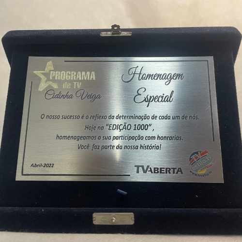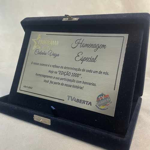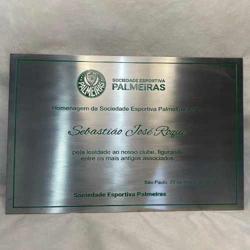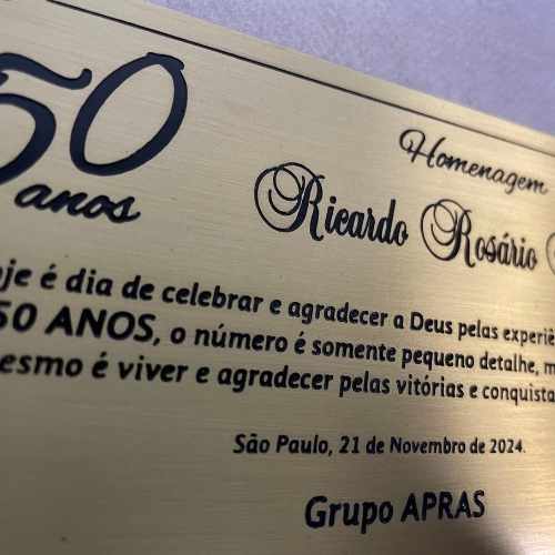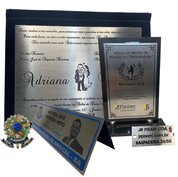 Destaque conquistas e homenagens com placas gravadas em aço inox, feitas à mão e entregues com rapidez por quem tem mais de 20 anos de experiência.