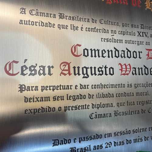 Destacamos conquistas com placas exclusivas e personalizadas em aço inox.